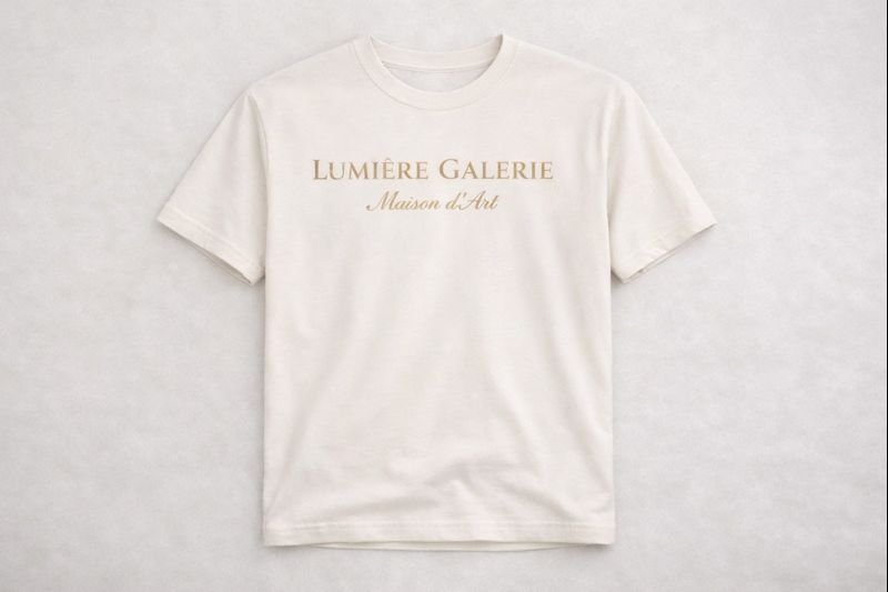 Constructed from premium mid-weight cotton, the tee offers a smooth hand feel and structured drape while maintaining everyday comfort. The signature Lumière Galerie logo is printed in soft gold, creating a subtle statement without excess.